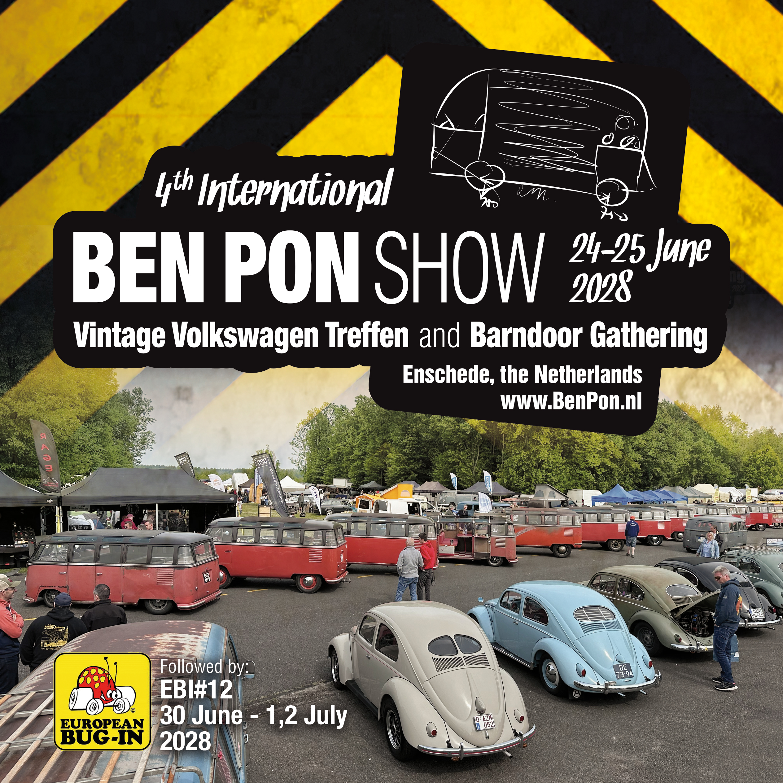 The date has been set; on 24-25 June, 2028 it is time for the BEN PON SHOW - 4th Int. Vintage VW Treffen and Barndoor Gathering in Enschede, the Netherlands.